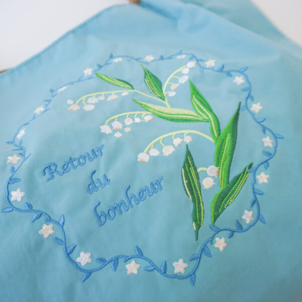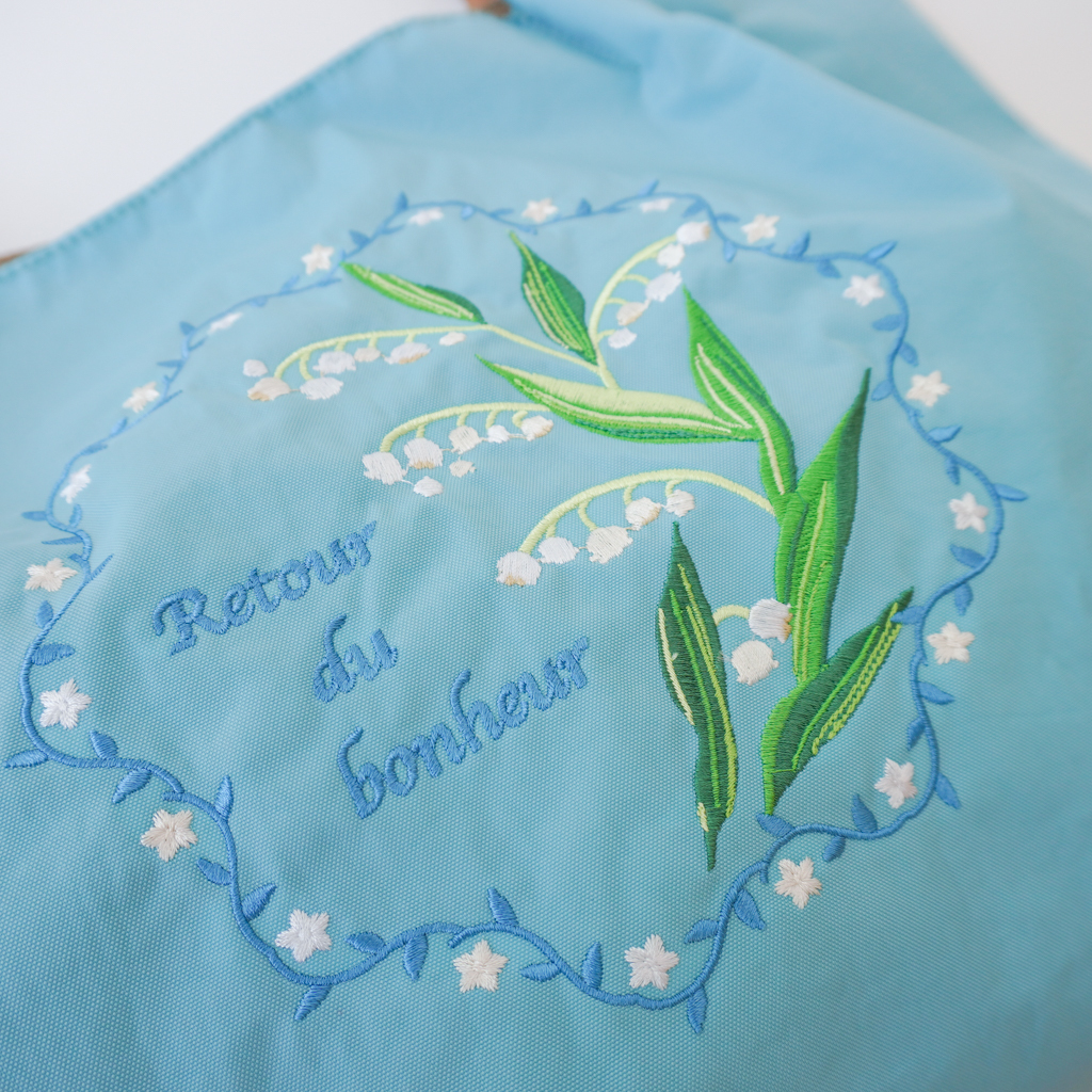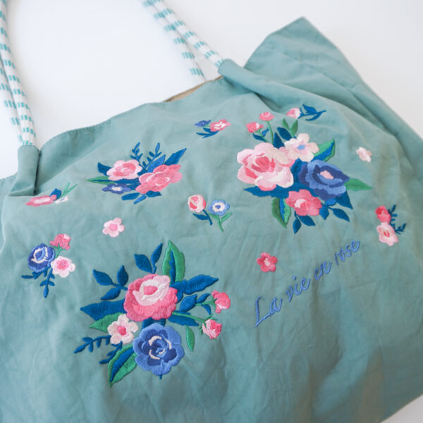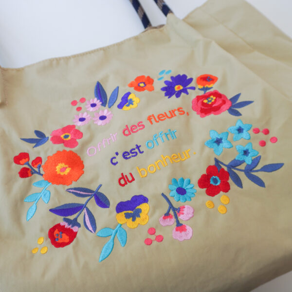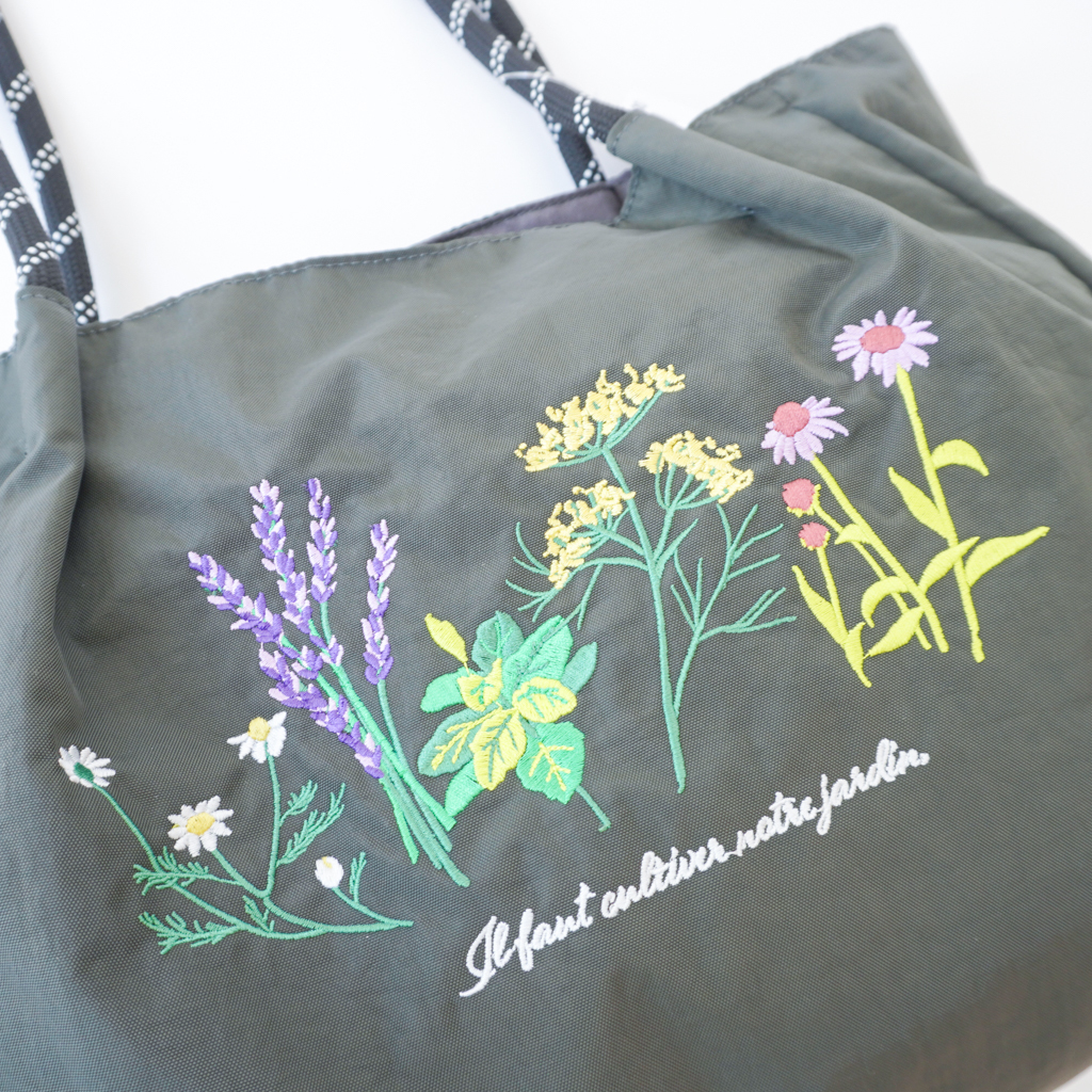 それぞれのカラーにフラワー刺繍を施したトートバッグ。