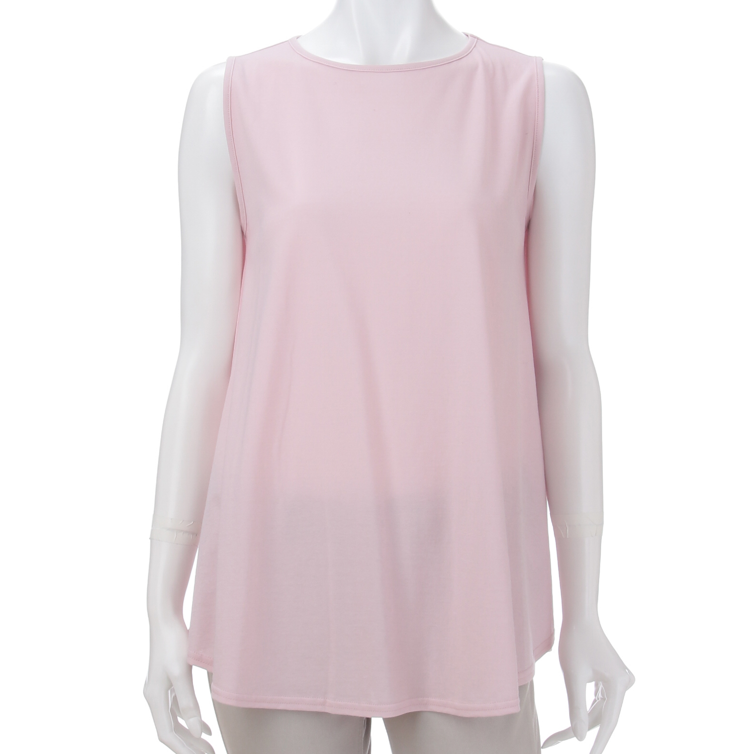 薄着季節の腰まわりの体形カバーを実現するフレアーシルエットのノースリーブ。クール素材の綿100%はサラッと気持ちの良い着心地。1枚で着れるノースリーブを求めて完成したアイテムです。
